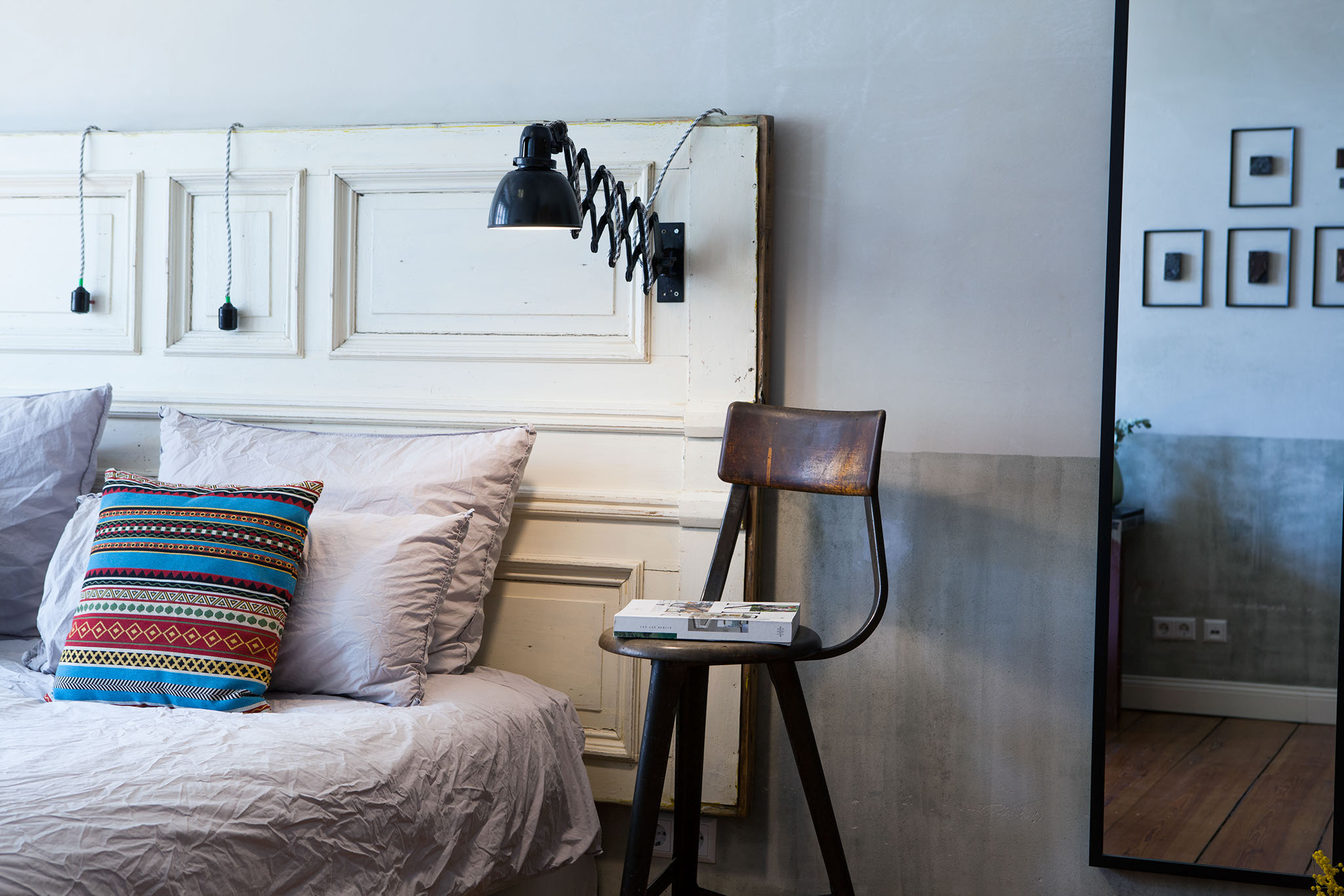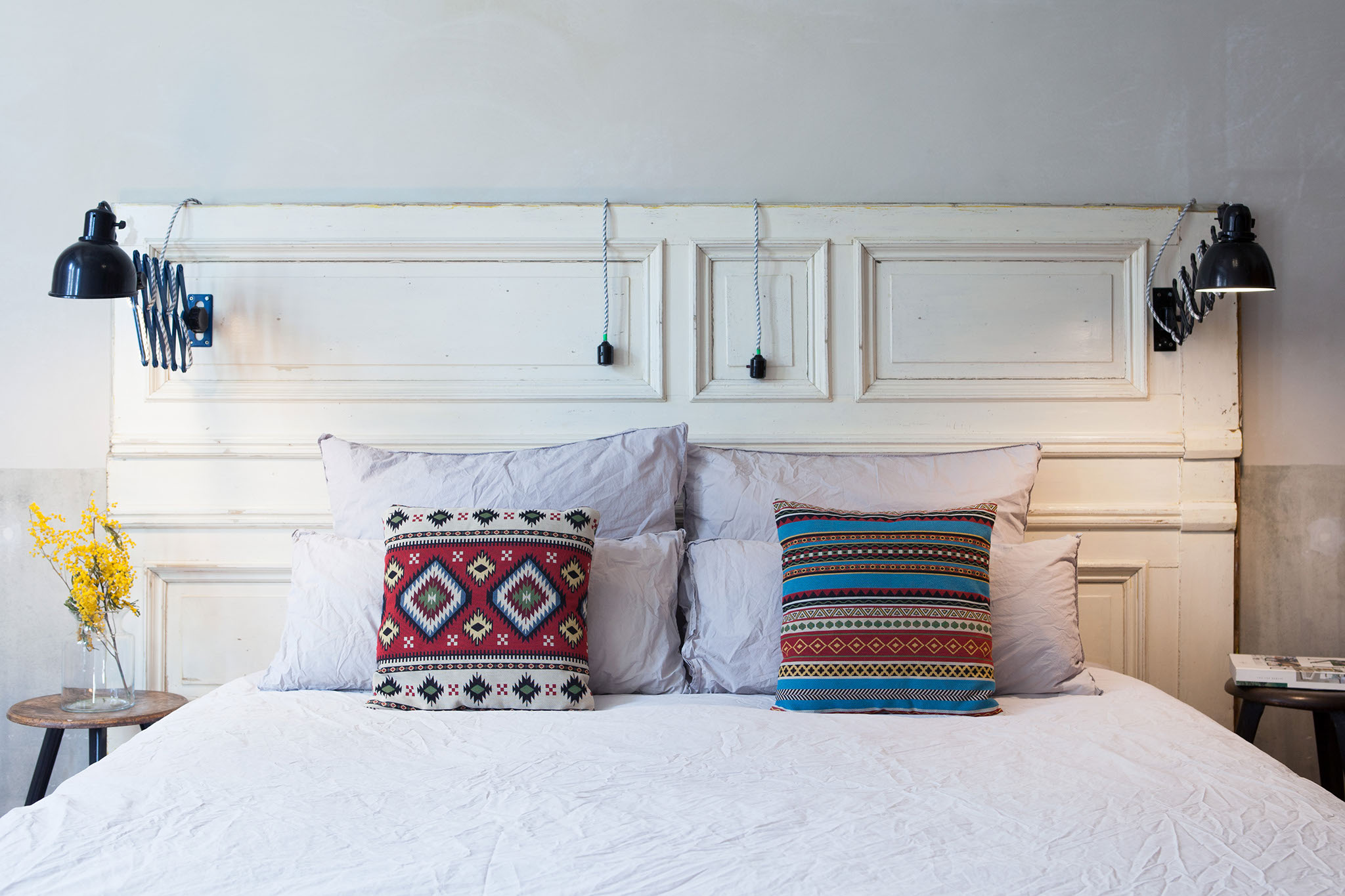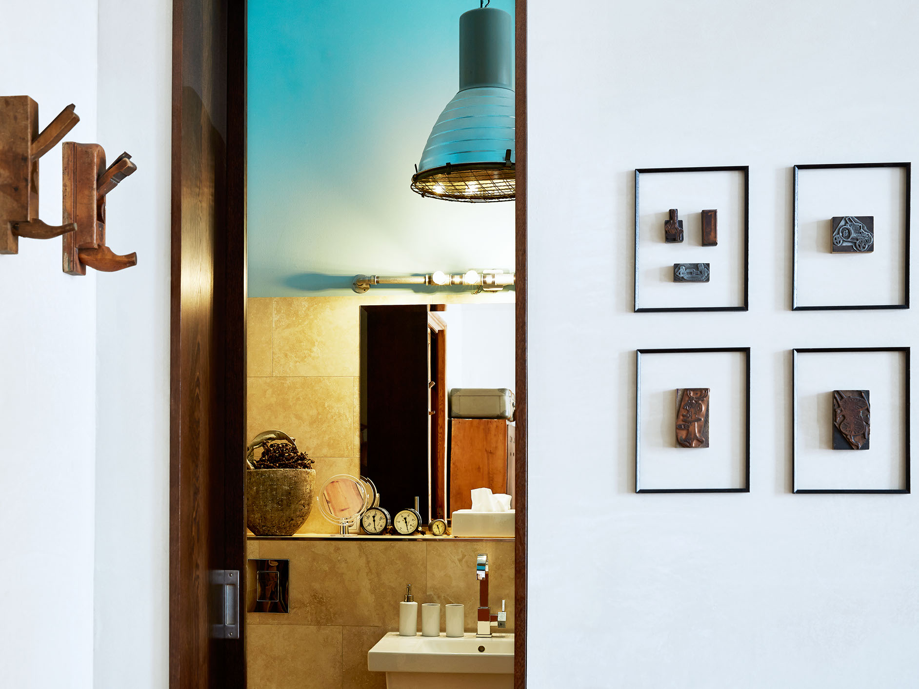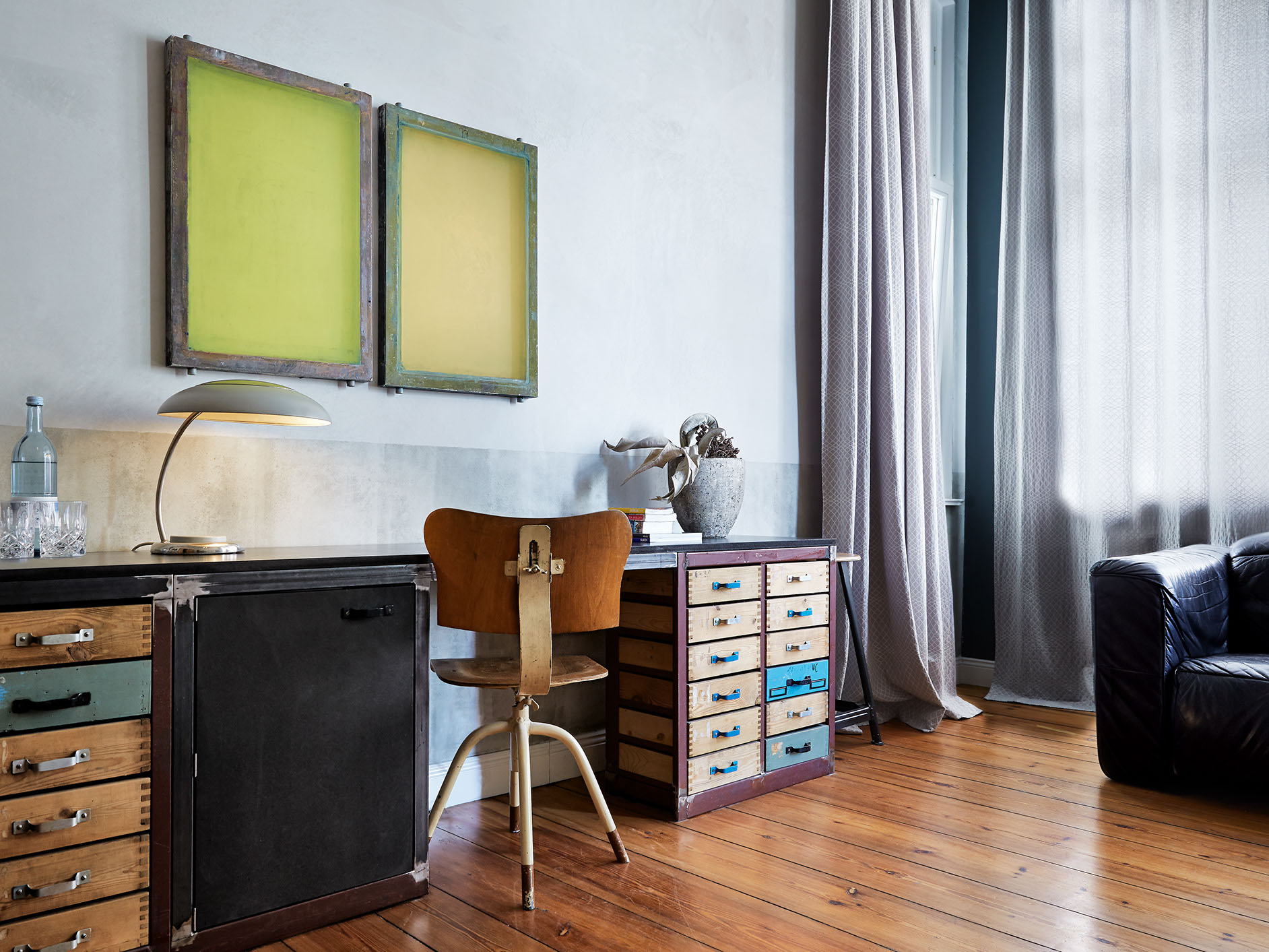 For the industrialist, this room is a haven of collectables. From metal box side tables to a vintage Pierre Cardin leather sofa, this space offers plenty of fun and coolness.