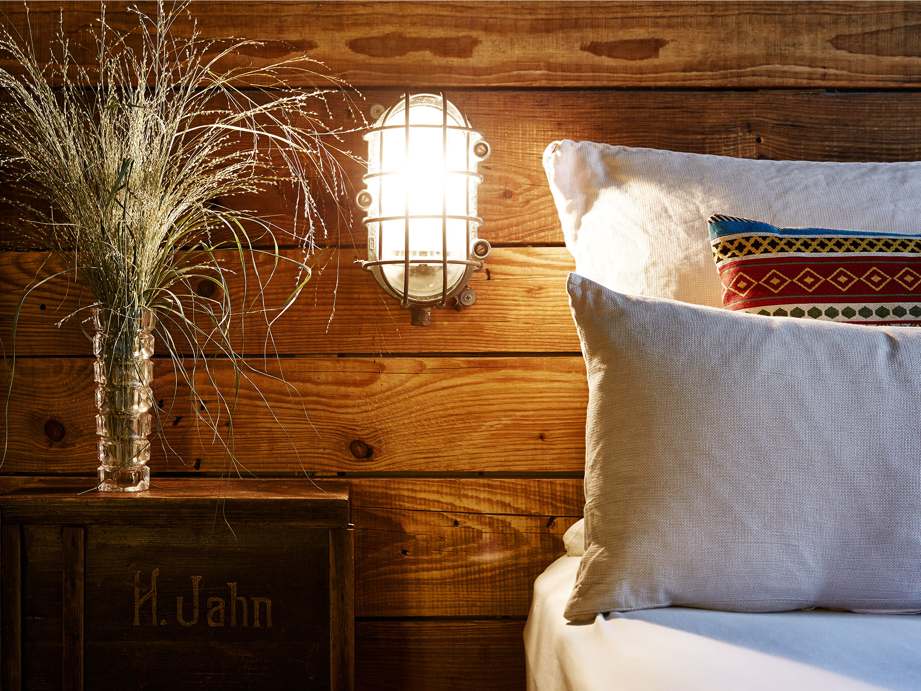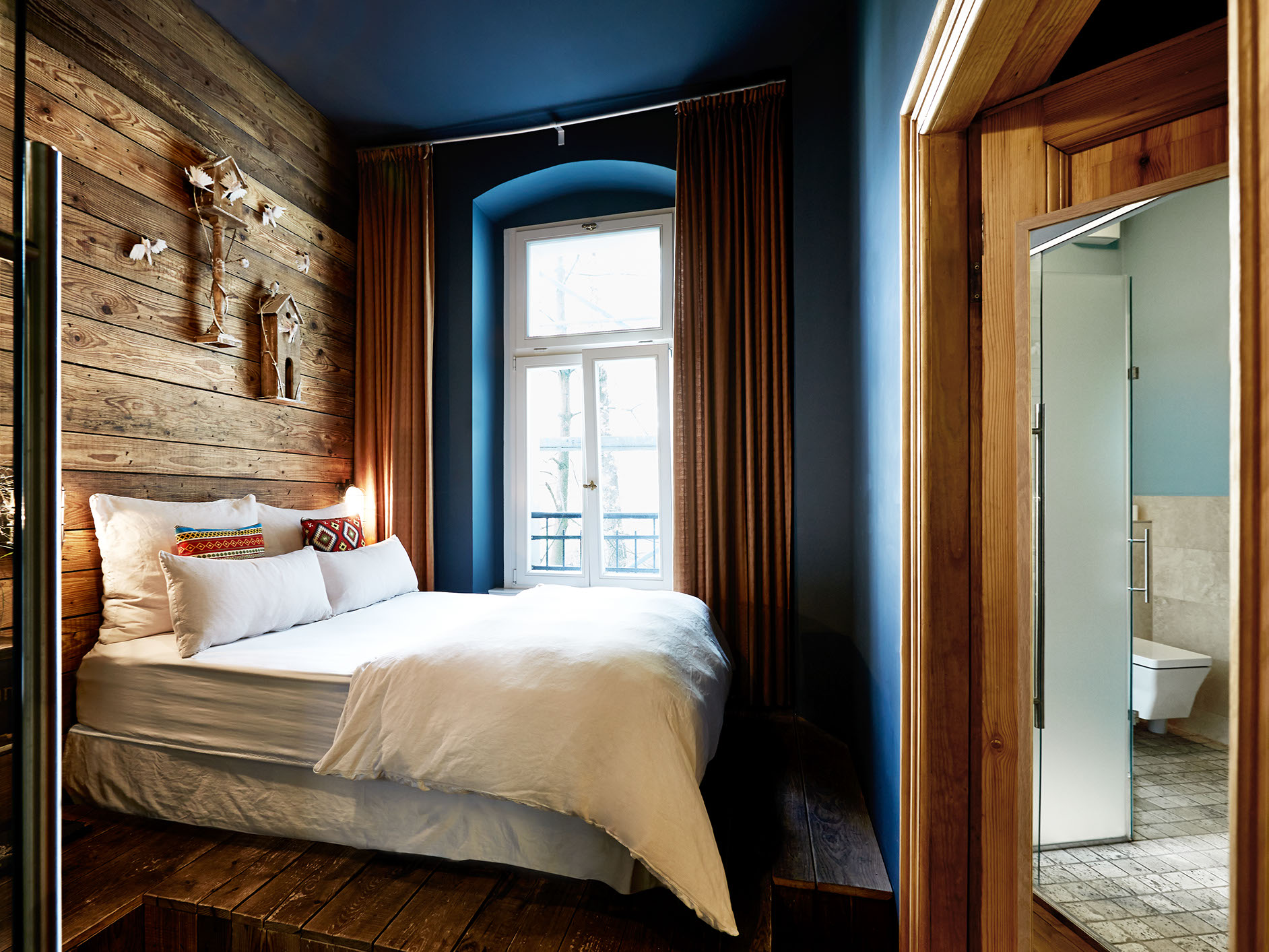 The smallest and most affordable room which happens to be the cosiest is lined with recycled wood making guests want to snuggle in the double sized bed right away.