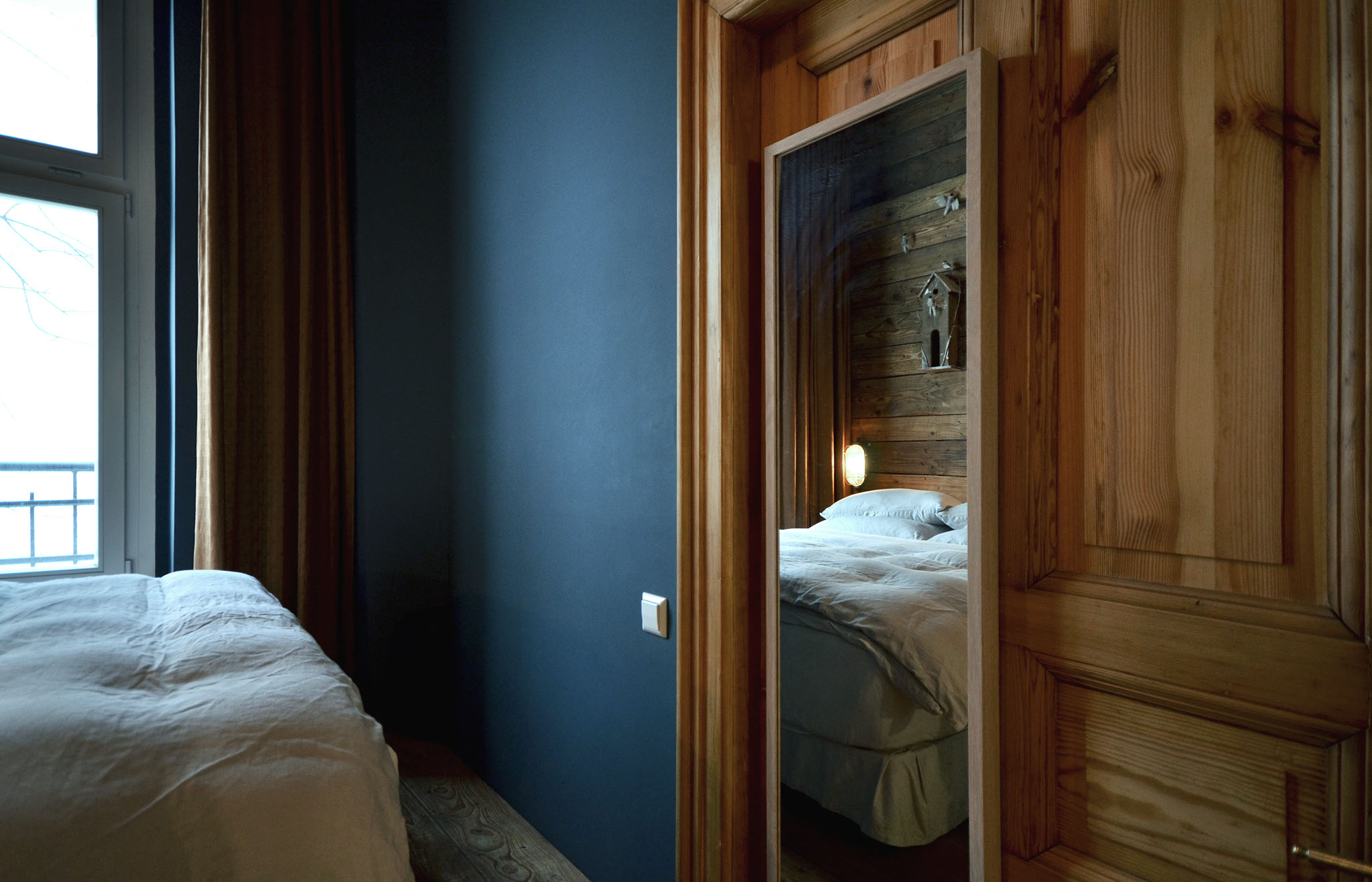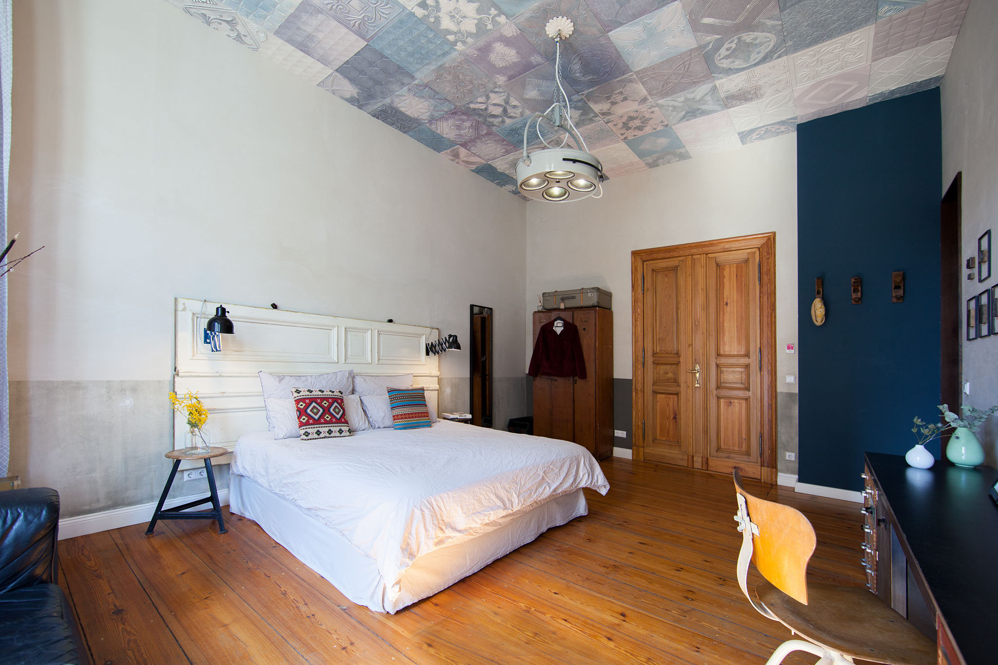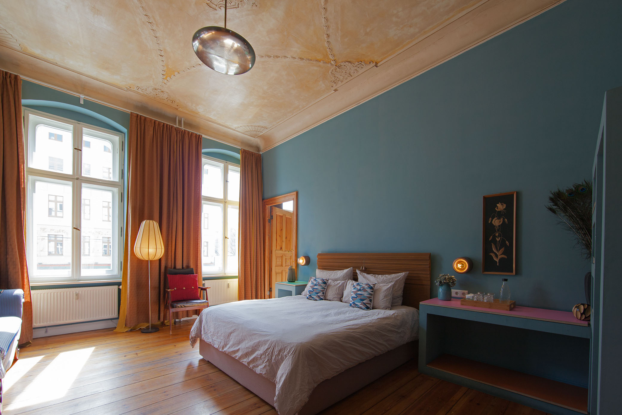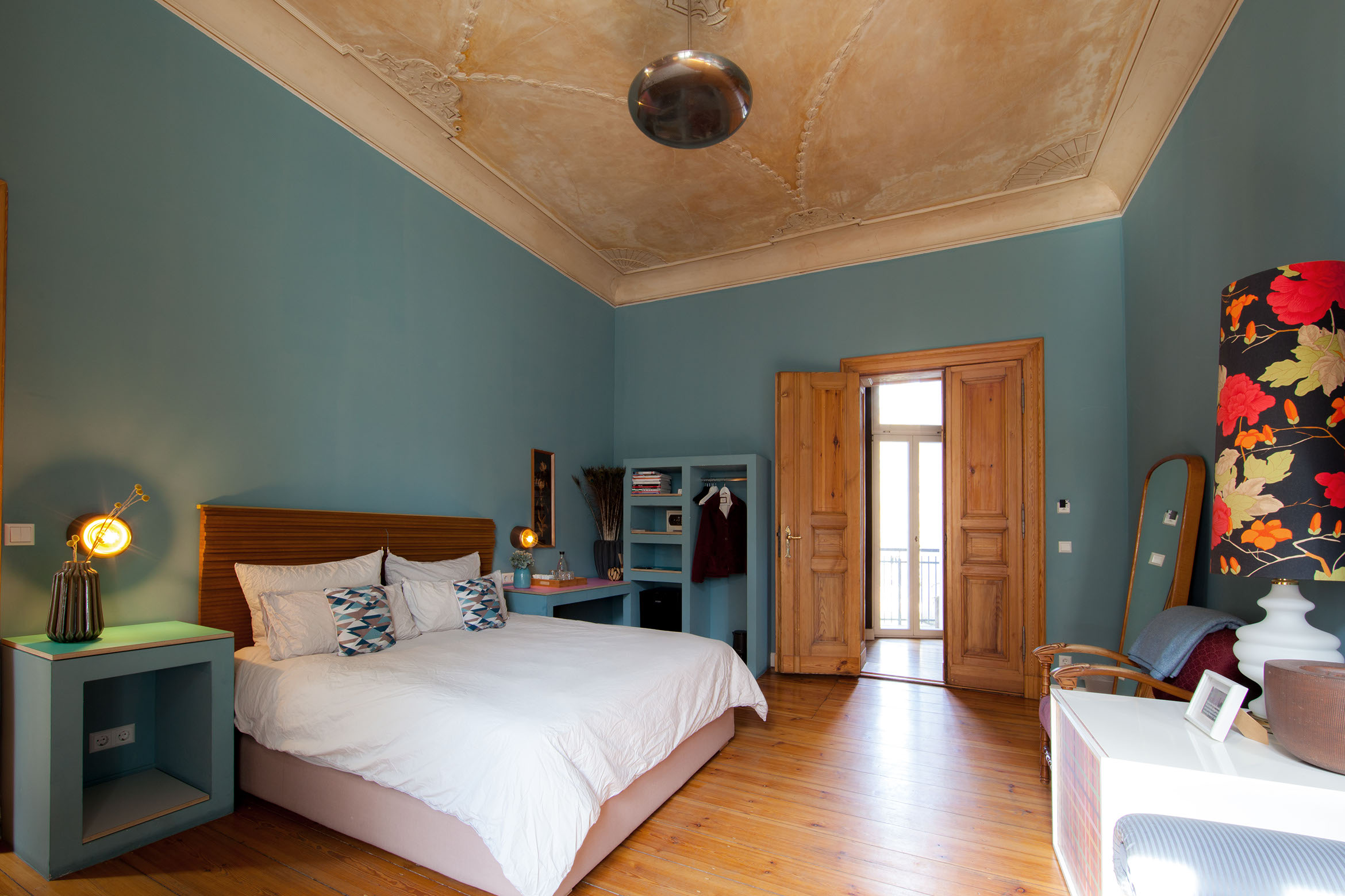 The walls are coated with a stunning and soothing blue that definitively leaves a lasting impression.