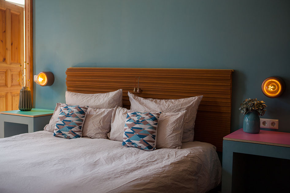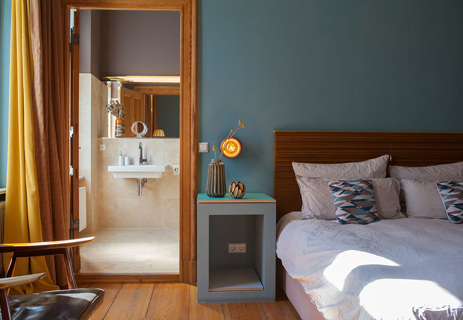 The walls are coated with a stunning and soothing blue that definitively leaves a lasting impression.