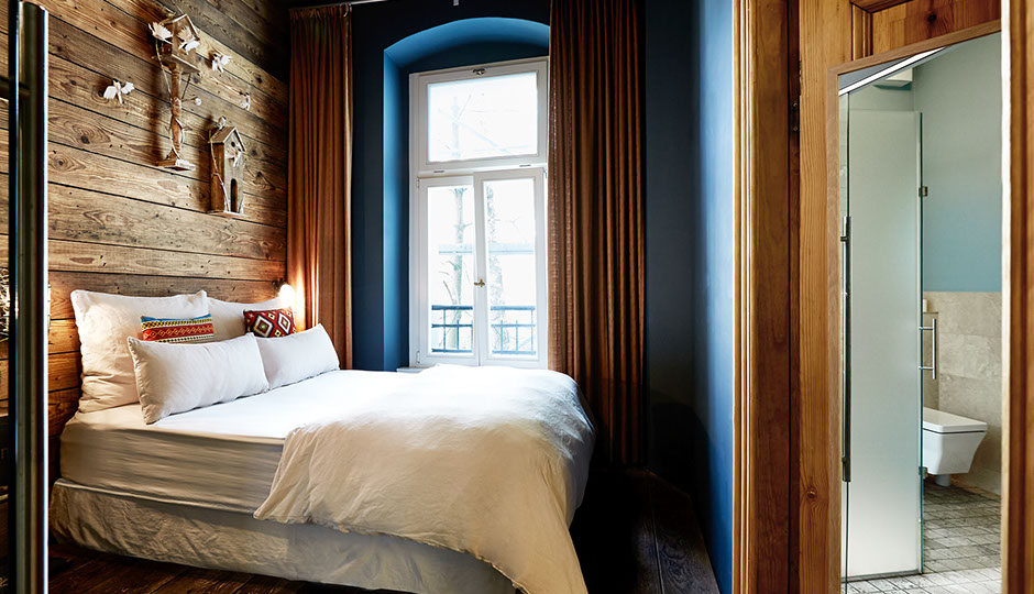 The smallest and most affordable room which happens to be the cosiest is lined with recycled wood making guests want to snuggle in the double sized bed right away.